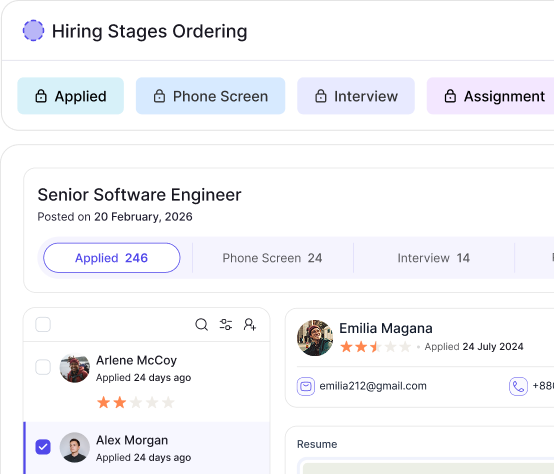 Set custom hiring pipelines with your own stages and workflows for each department.