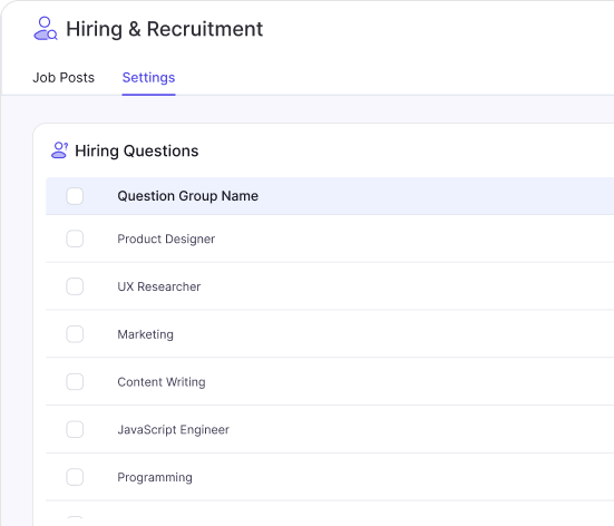 Group questions by skill, department, or interview stage to streamline structured assessments.